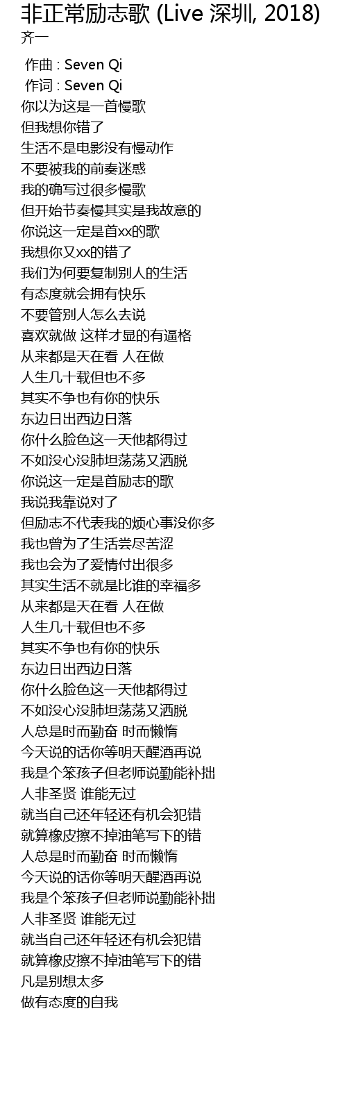 | Song | 非正常励志歌 (Live 深圳, 2018) |
