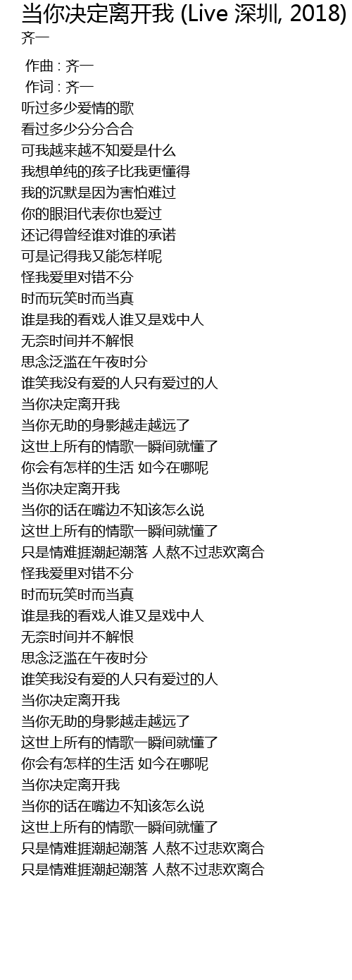 | Song | 当你决定离开我 (Live 深圳, 2018) |