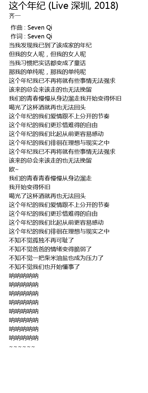 | Song | 这个年纪 (Live 深圳, 2018) |