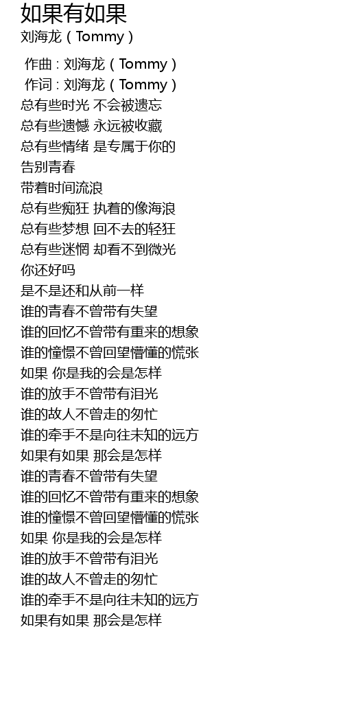 | [00:01.000] | zuò cí : liú hǎi lóng Tommy |