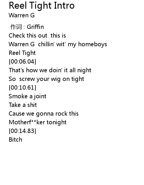 | [00:05.50] | Reel Tight |