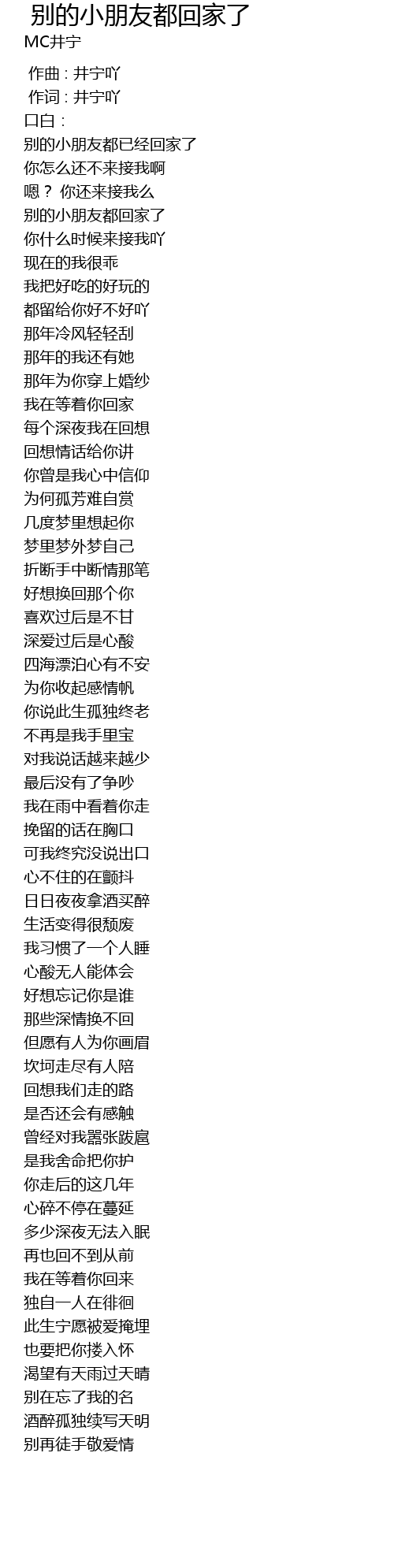 | [00:01.48] | bié de xiǎo péng yǒu dōu yǐ jīng huí jiā le |