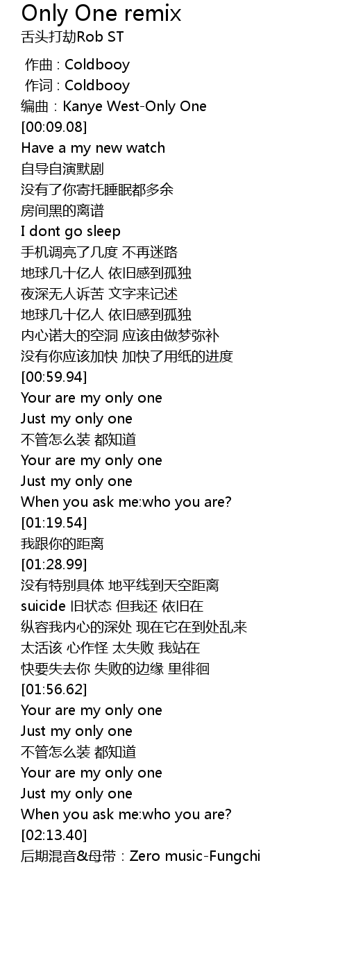| [00:06.46] | 编曲:Kanye West-Only One |