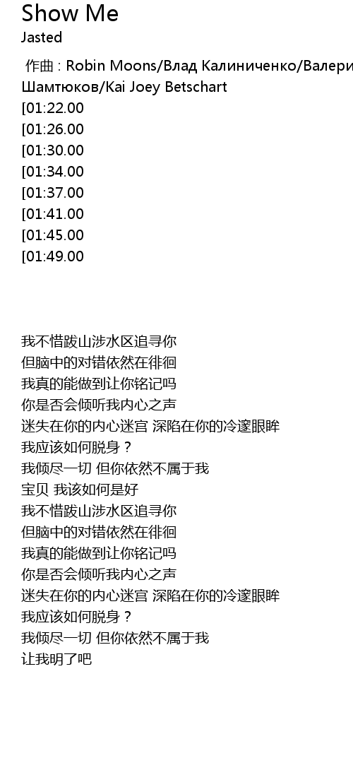 | [00:17.00][01:37.00] | Lost in your maze stuck in your gaze |