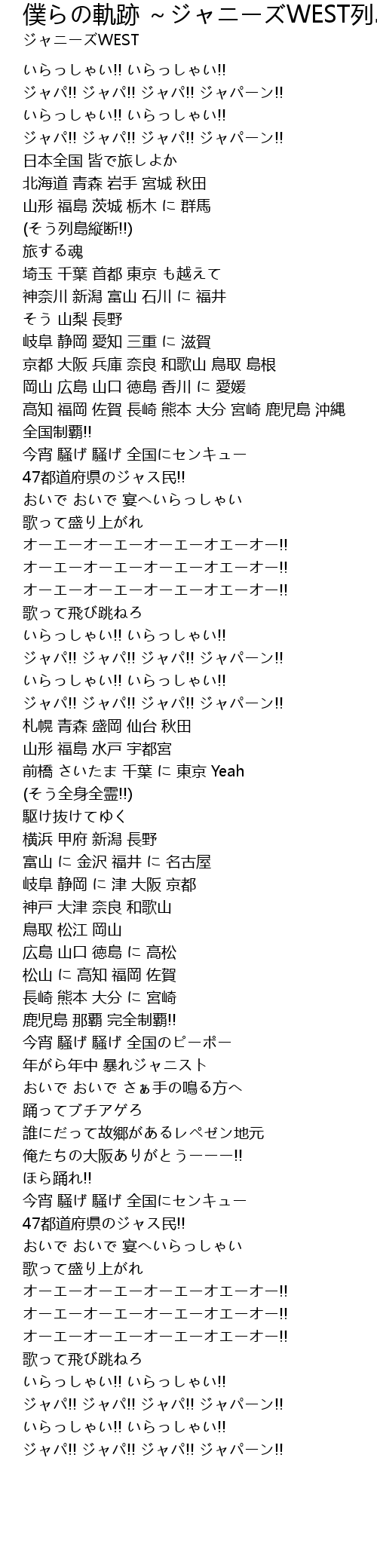 | Song | 僕らの軌跡 ~ジャニーズWEST列島縦断~ |