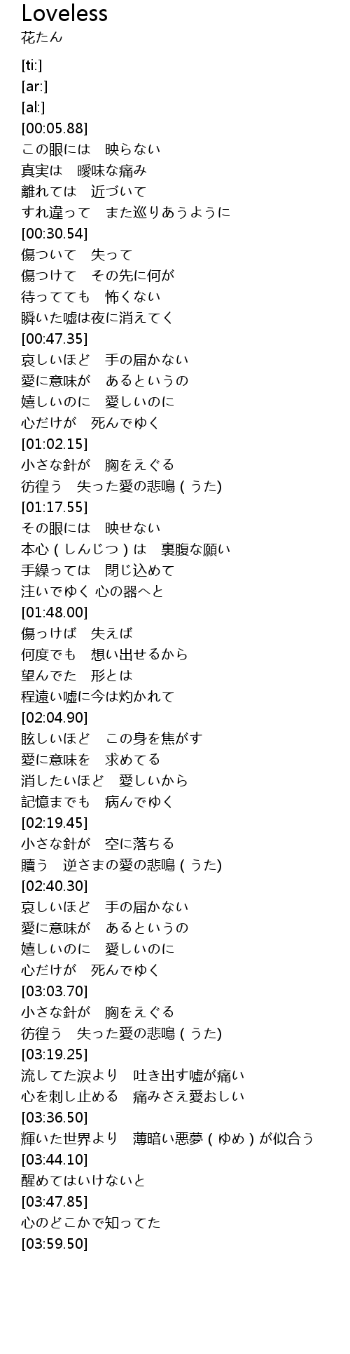 | [03:29.55] | 心を刺し止める 痛みさえ愛おしい |