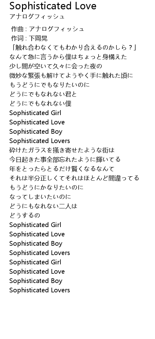 | [00:00.000] | 作曲 : アナログフィッシュ |
