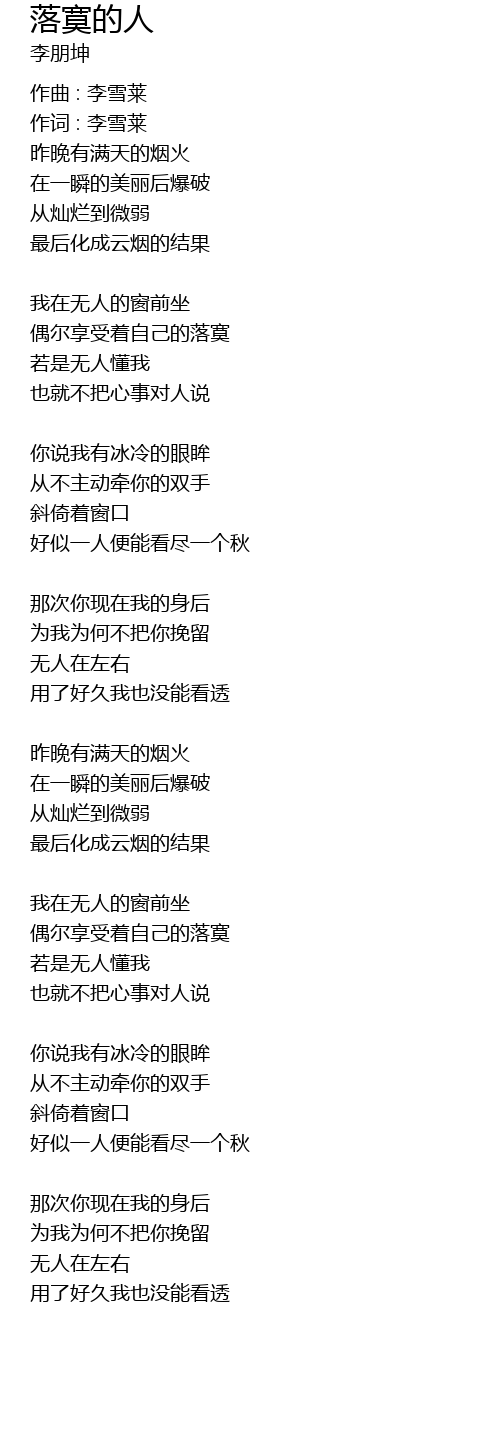| 作词 : 李雪莱 | |