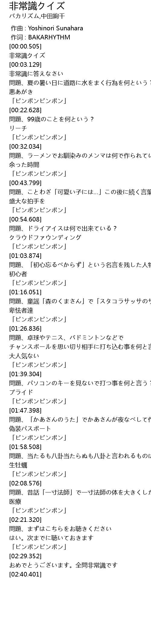 | [02:33.322] | おめでとうございます。全問非常識です |