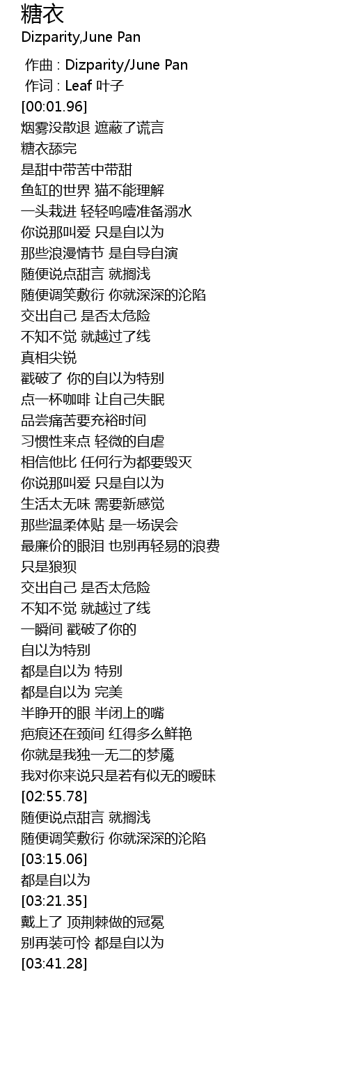 | [00:00.000] | zuò qǔ : Dizparity June Pan |