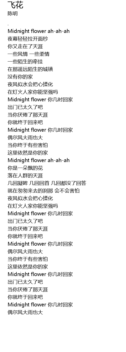 | [03:44.77] | Midnight flower nǐ jǐ shí huí jiā |