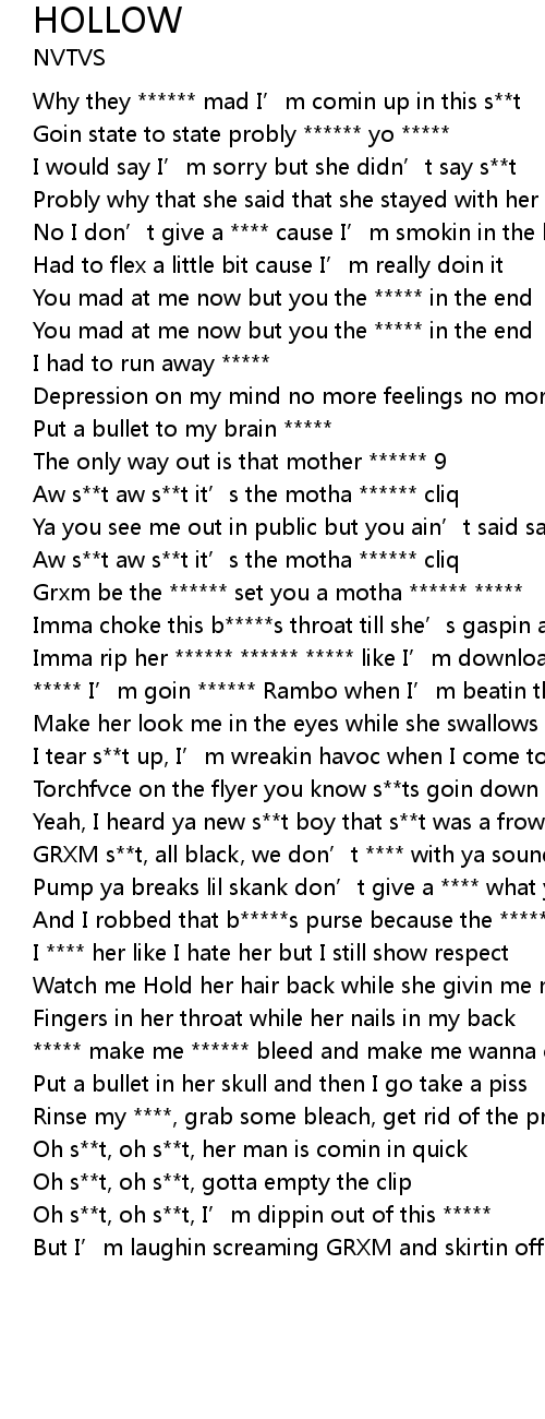 | [01:28.58] | Imma choke this b*****s throat till she’s gaspin and s**t.. roof |
