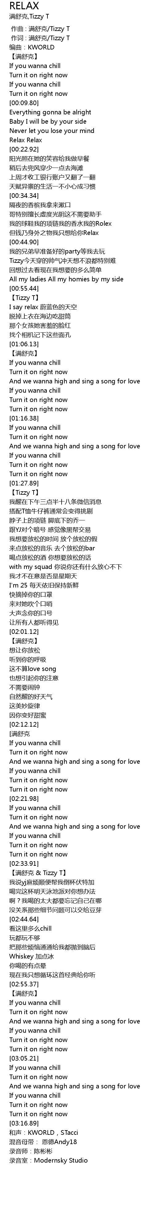 | [00:20.11] | Relax Relax |