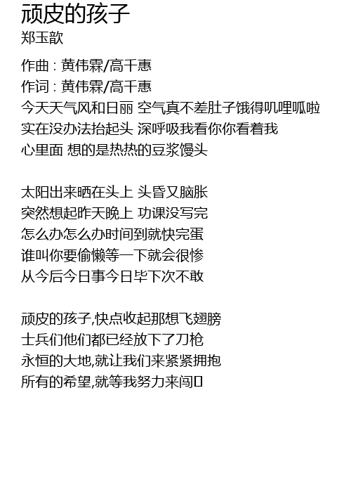 | 今天天气风和日丽 空气真不差肚子饿得叽哩呱啦 实在没办法抬起头 深呼吸我看你你看着我 | |