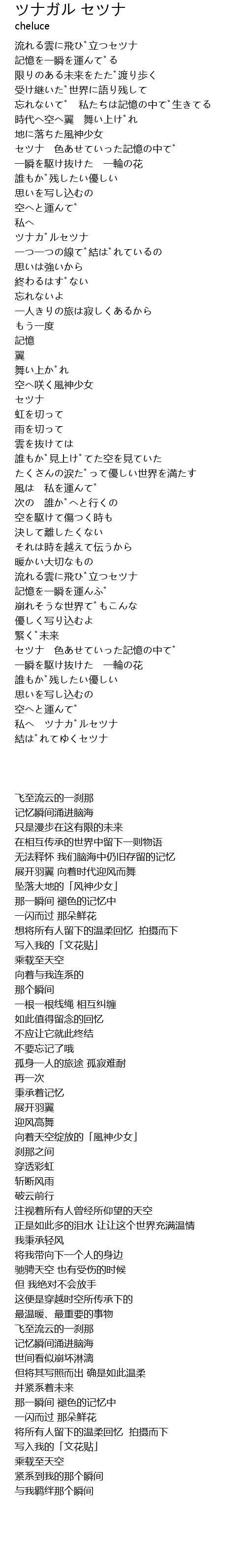 | [03:06.874] | 流れる雲に飛び立つセツナ |