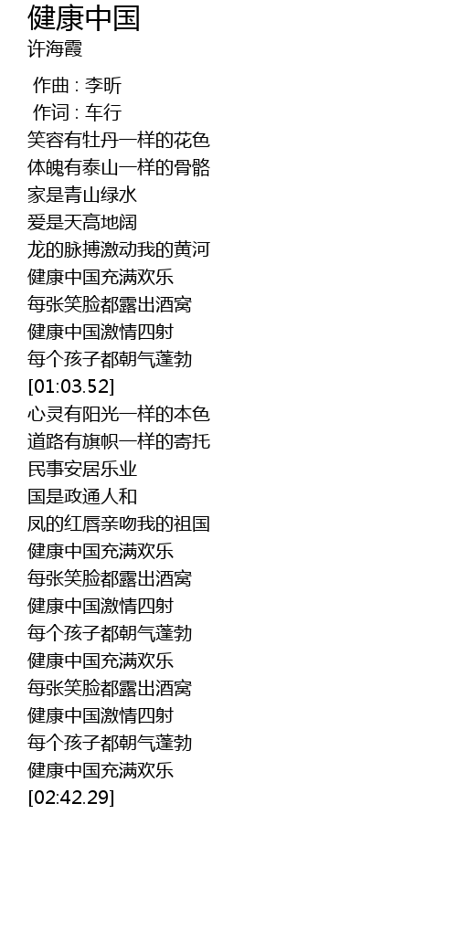 | [02:02.27] | jiàn kāng zhōng guó chōng mǎn huān lè |