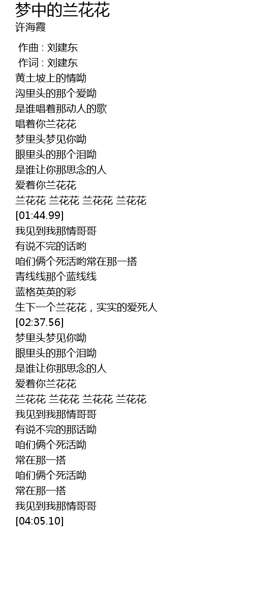 | [01:26.06] | 兰花花 兰花花 兰花花 兰花花 |