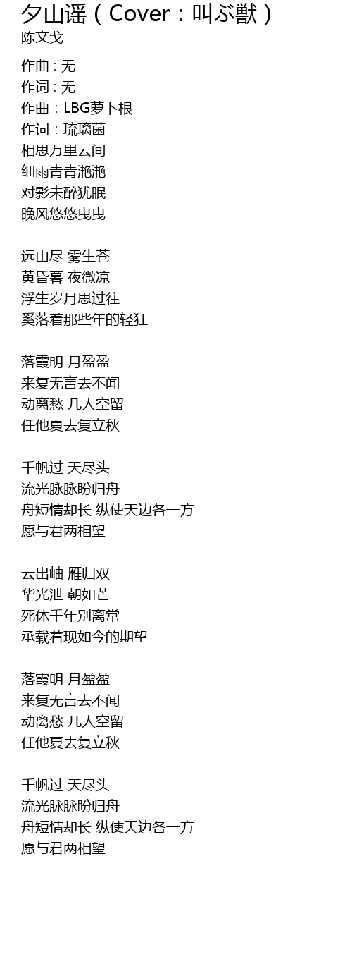 | Song | 夕山谣(Cover:叫ぶ獣) |