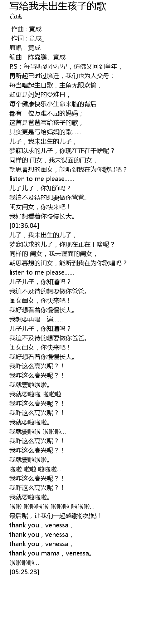| [00:35.01] | ér zi, wǒ wèi chū shēng de ér zi, |