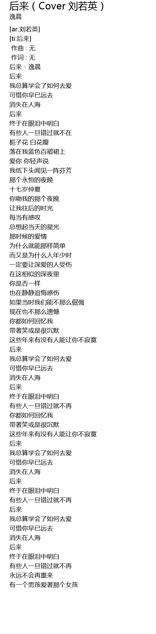 | [00:00.03] | 后来 - 逸晨 |
