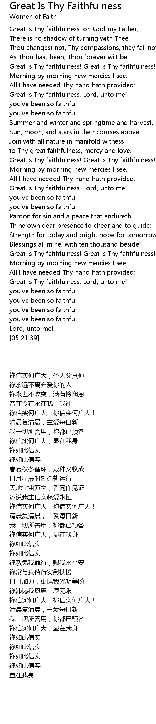 Great is Thy faithfulness! Great is Thy faithfulness! |