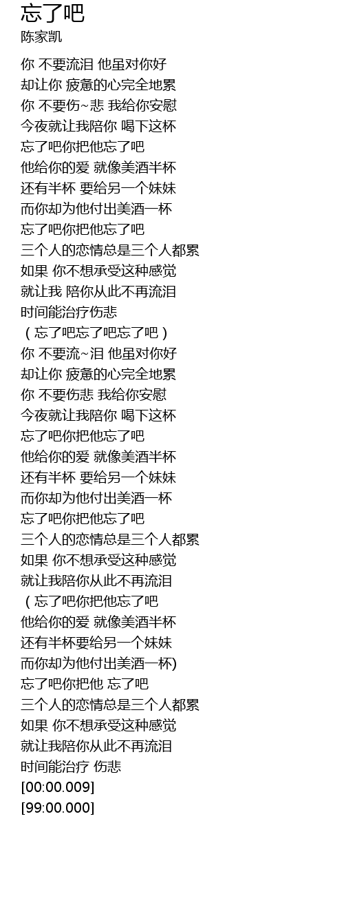 | [00:53.31] | 忘了吧你把他忘了吧 |