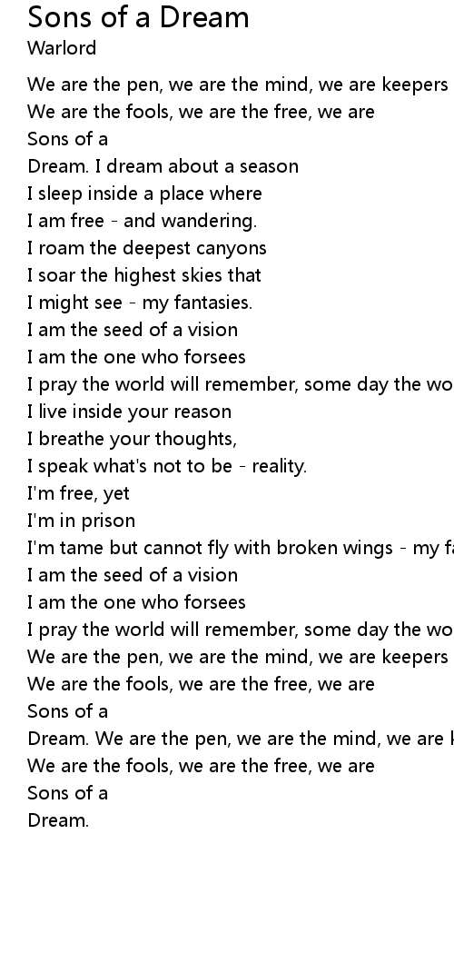 Dream. We are the pen, we are the mind, we are keepers of the light, |