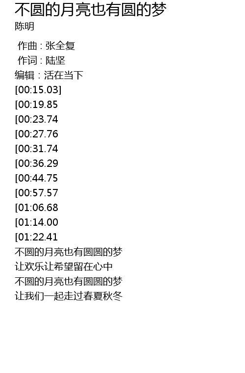 | [02:28.28][00:57.57] | 不圆的月亮也有圆圆的梦 |