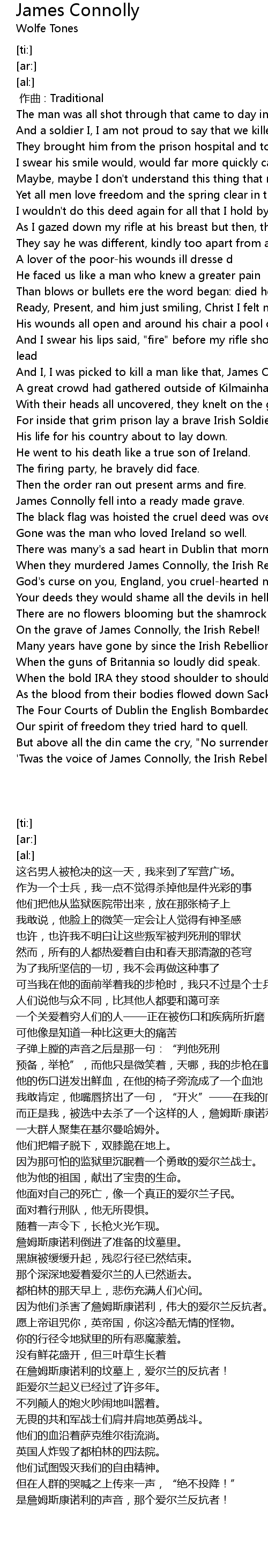 | [03:15.61] | When they murdered James Connolly, the Irish Rebel. |