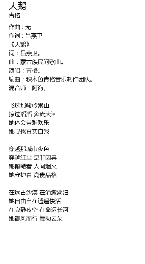 | 演唱:青格。 | |