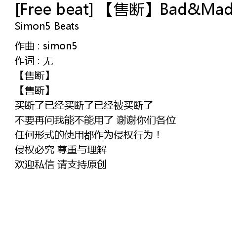 | Song | [Free beat] 【售断】Bad&Mad |