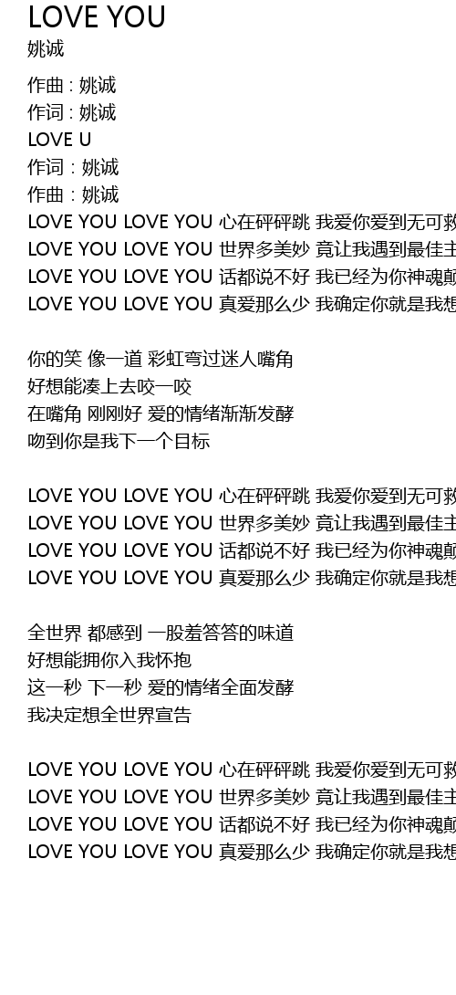 | LOVE YOU LOVE YOU zhen ai na me shao wo que ding ni jiu shi wo xiang yao |