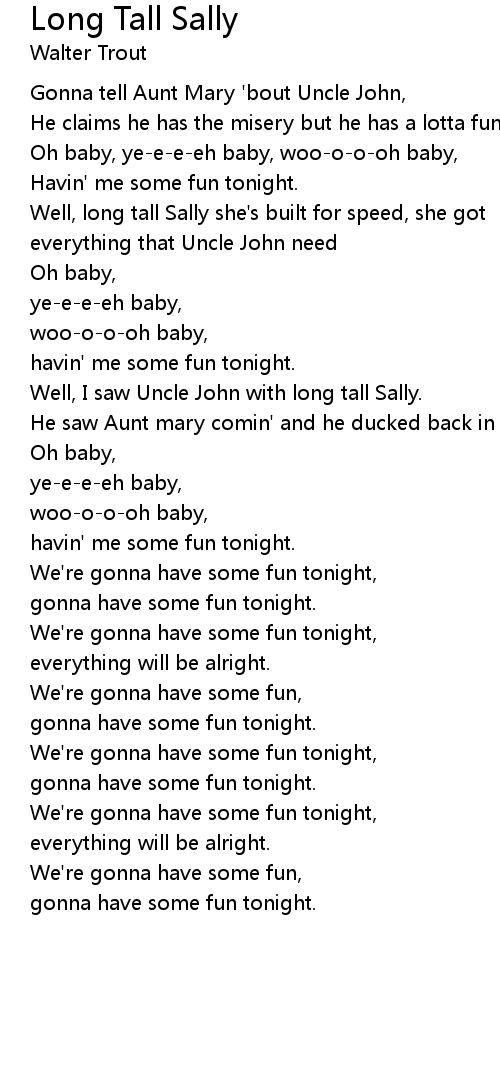 Well, I saw Uncle John with long tall Sally. |