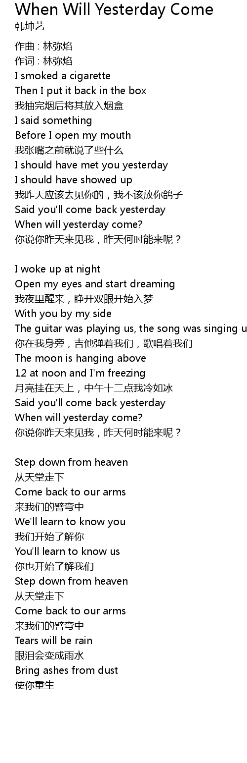 | nǐ shuō nǐ zuó tiān lái jiàn wǒ, zuó tiān hé shí néng lái ne? | |