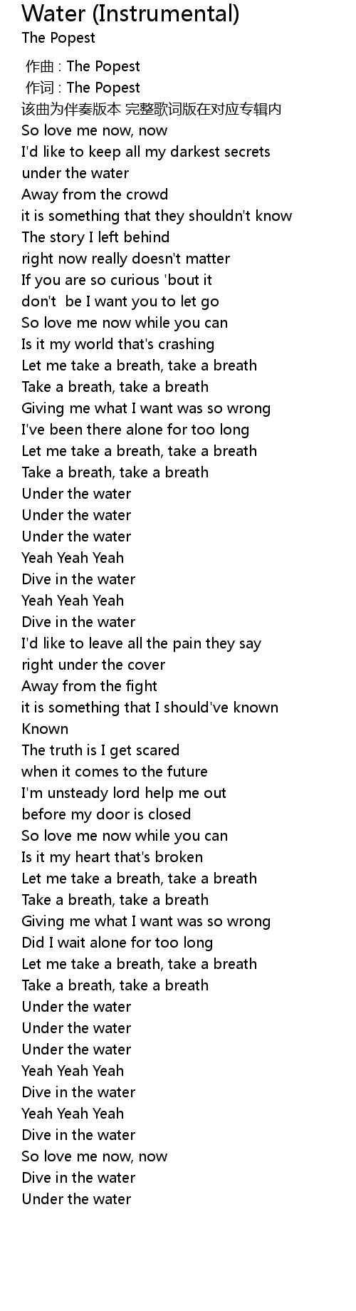 | [02:45.14] | Under the water |