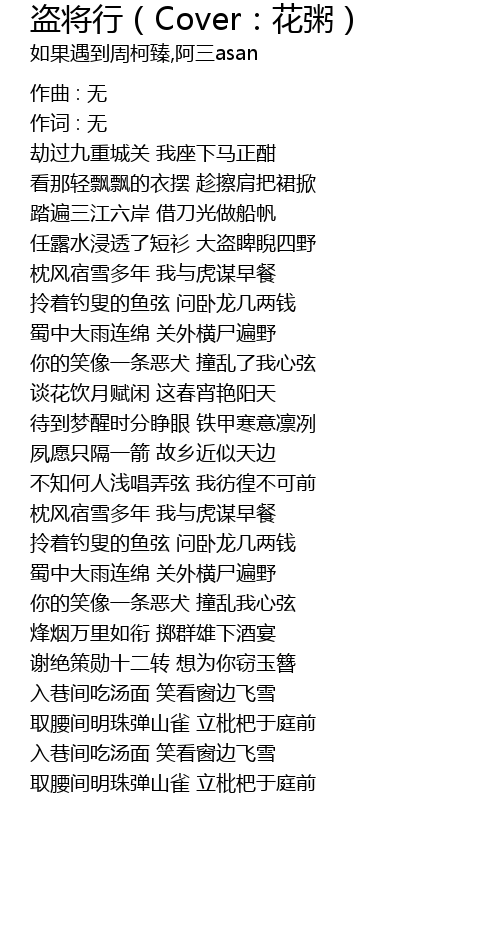 盗将行(Cover:花粥) dao jiang xing Cover: hua zhou Lyrics