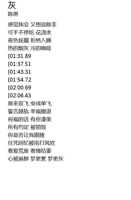 | [04:30.04] | 心被麻醉 梦更累 梦更灰 |