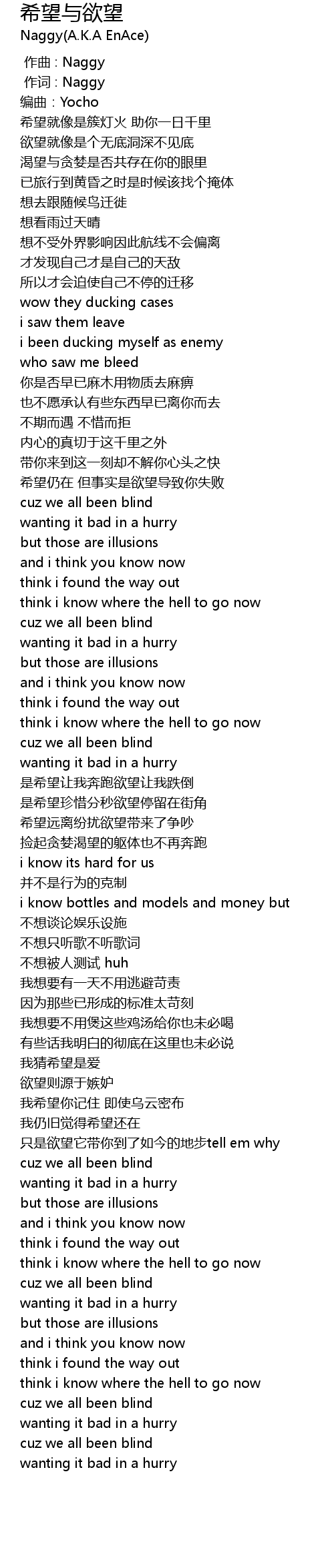 | Song | 希望与欲望 |