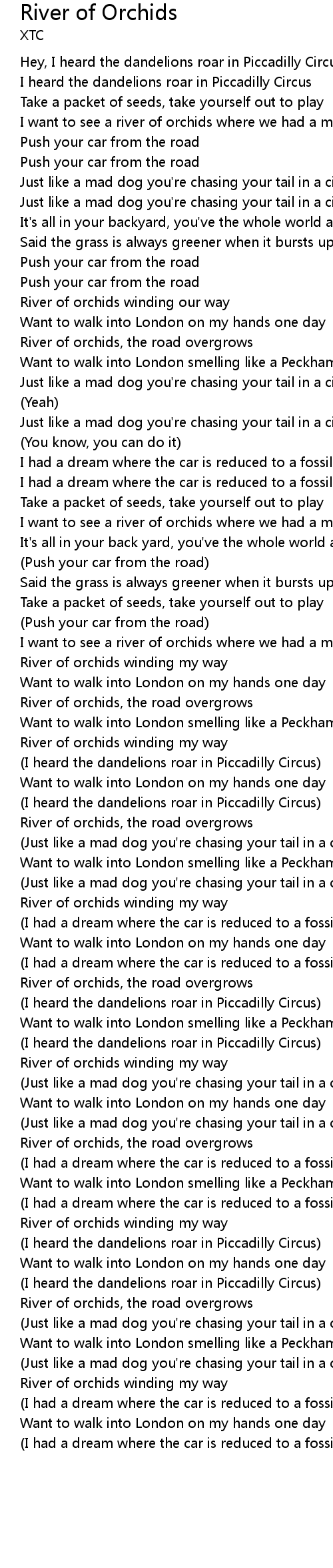 (I heard the dandelions roar in Piccadilly Circus) |