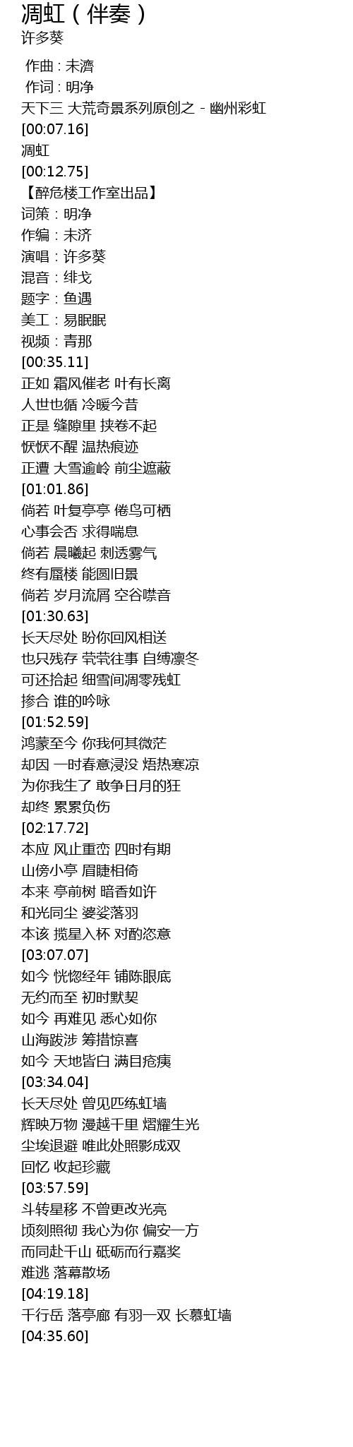 | [00:03.47] | 天下三 大荒奇景系列原创之 - 幽州彩虹 |