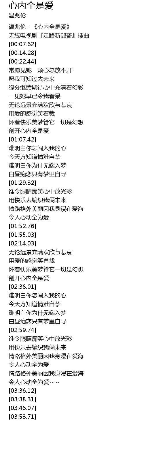 | [00:00.00] | 温兆伦-《心内全是爱》 |