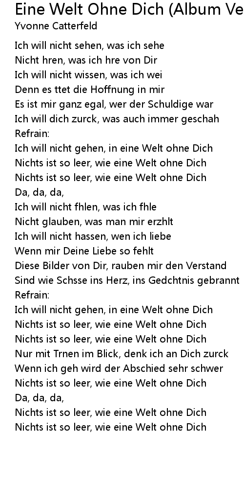 Ich will nicht gehen, in eine Welt ohne Dich |