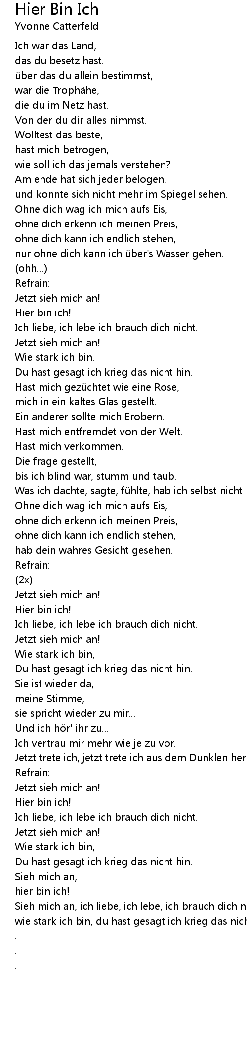 | Sieh mich an, ich liebe, ich lebe, ich brauch dich nicht. | |