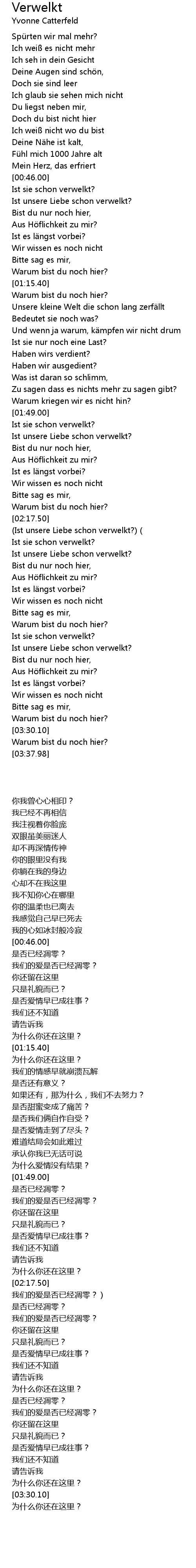 | [00:36.10] | Ich weiß nicht wo du bist |