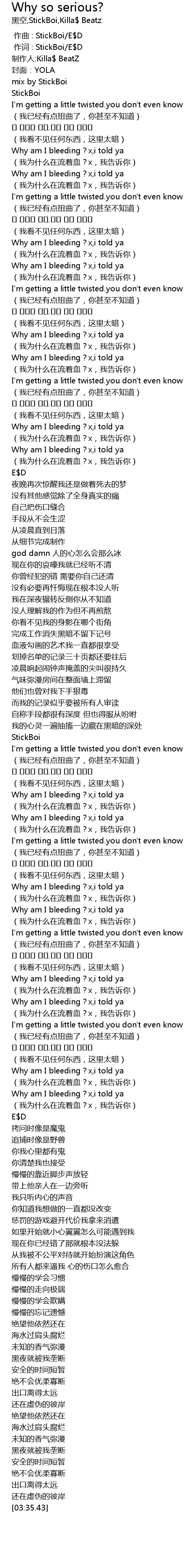 | [00:42.23] | Why am I bleeding?x,i told ya |