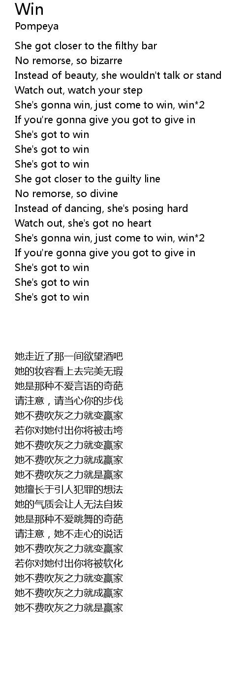 | [02:00.490] | She's gonna win, just come to win, win*2 |