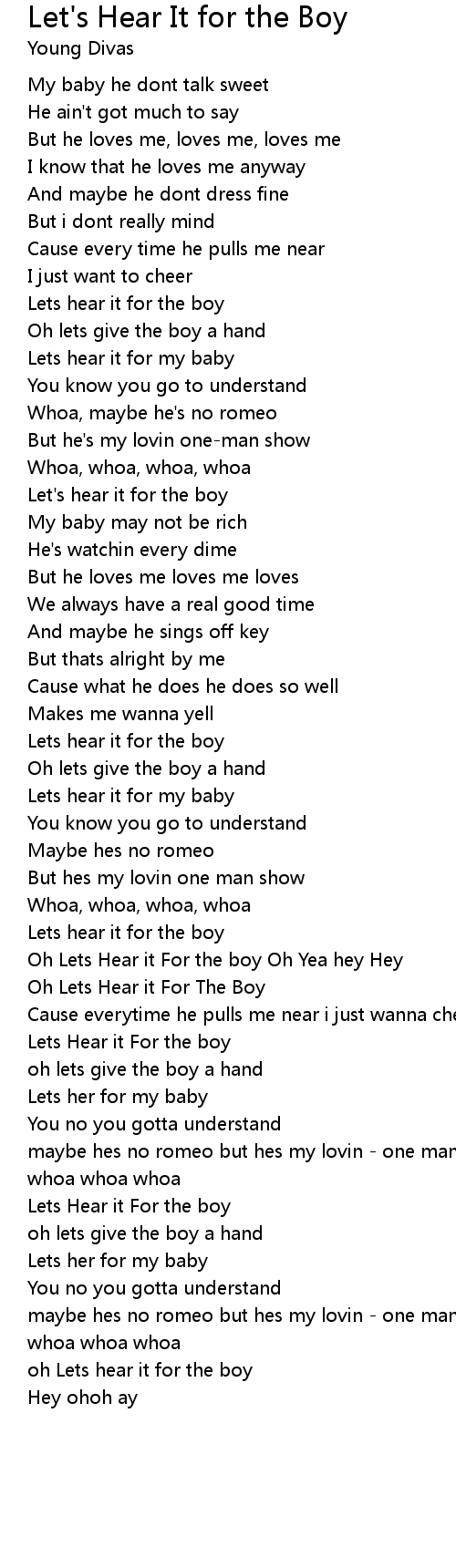 Oh Lets Hear it For the boy Oh Yea hey Hey