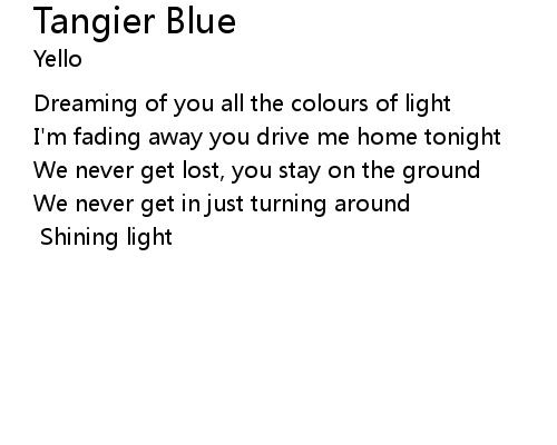| Song | Tangier Blue |