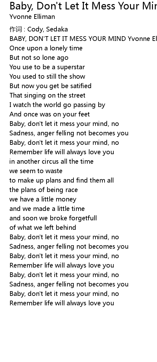 | BABY, DON'T LET IT MESS YOUR MIND Yvonne Elliman | |