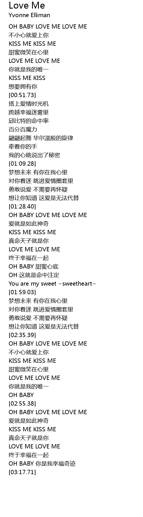 | [00:31.90] | OH BABY LOVE ME LOVE ME |